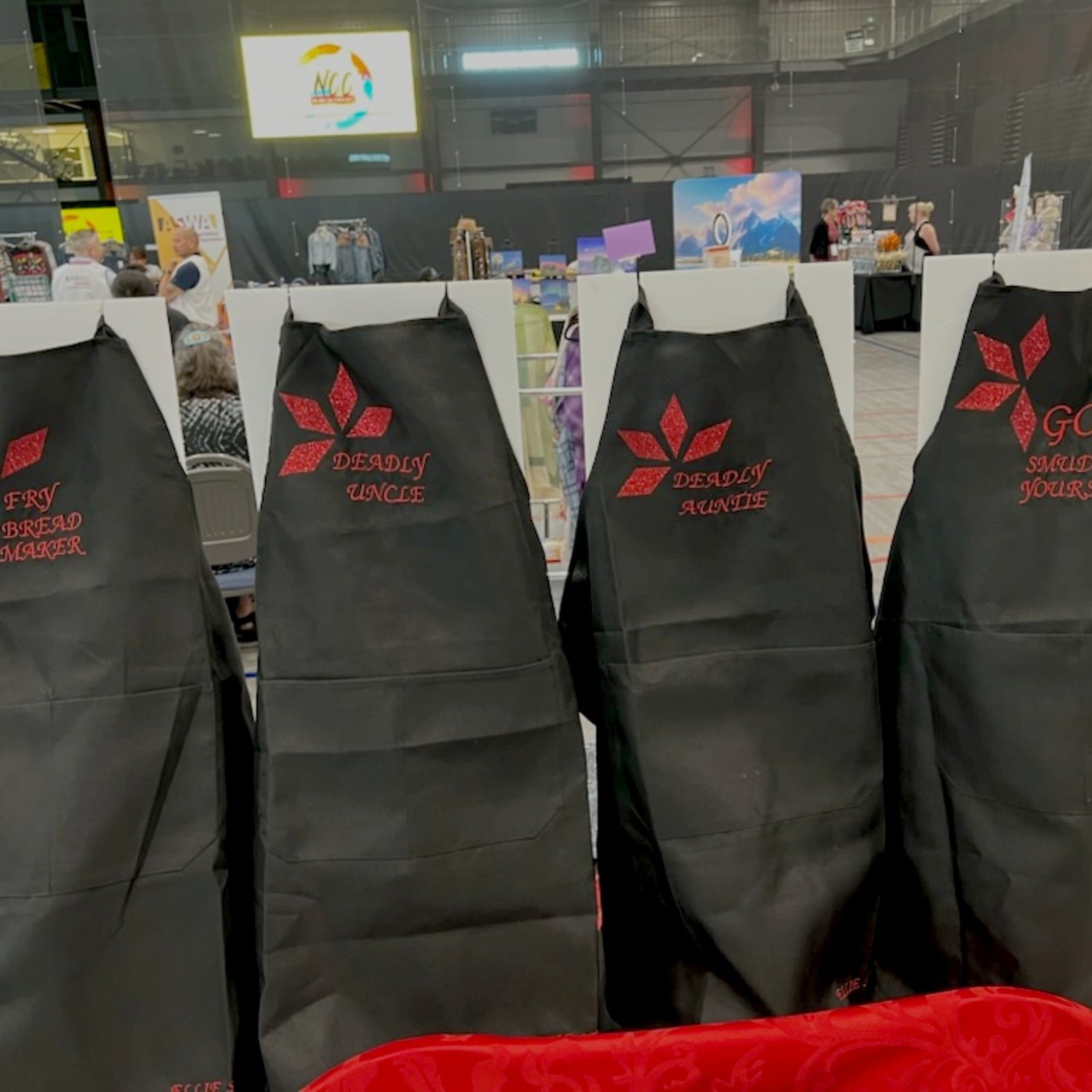 Get cooking with love and tradition in a custom apron from Ellie Star Blanket. Beautifully crafted with meaningful designs, beadwork, or patterns that reflect your heritage and personal style. Perfect for cooking up a storm in the kitchen or adding a touch of cultural flair to your gatherings.